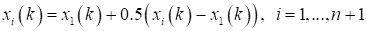 Reflection - designing xh(k) through the center of gravity according to the expression: