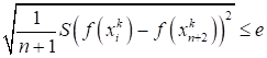 where e is an arbitrary small number, and f(xn+2(k)) is the value of the goal function in the center of gravity xn+2(k).
