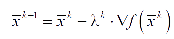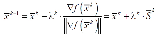 The gradient of the function at any point shows the direction of the greatest local increase f(x̅). Therefore, when searching for the minimum of f(x̅), one should move in the direction opposite to the direction of the gradient ∇f(x̅) at a given point, i.e., in the direction of the fastest descent. The iterative formula of the process of the fastest descent is as follows: