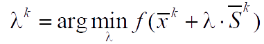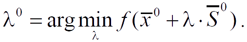 where λ0 is selected from the considerations of the minimum of the goal in this direction: