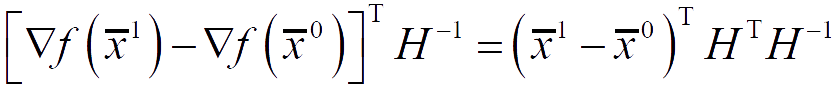 Using the expression above, it is possible to exclude (S̅0)T from the equation. For the quadratic function H = HT, therefore, after transposing the expression and post-multiplying by H−1, the following expression is obtained: