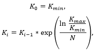 K value in i-th calculation point (i = 0 … N) is evaluated by the following formula: