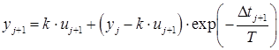 The block algorithm implements the calculation of the output signal at discrete moments of time (at each step of integration, including the bad steps) according to the following ratio: