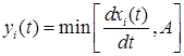 The block implements the numerical determination of the derivative with the output value modulus limitation, according to the following formula: