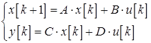 The dimension of the matrix A is Nx×Nx. The dimension of the matrix B is Nu×Nx. The dimension of the matrix C is Nx×Ny. The dimension of the matrix D – Nu×Ny.