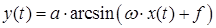 - By default, this block implements the inverse sinusoidal transformation of the input scalar signal with the properties a=1, ω=1, f=0.