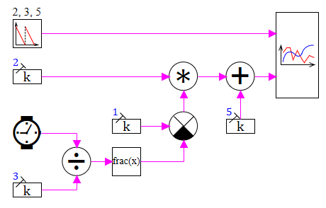 - The block is identical to the following calculation scheme (the properties of the Reverse sawtooth are set equal to 2, 3 and 5):