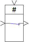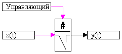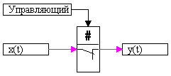 where x(t) is the input signal of the block (or signal vector), y(t) is the output signal of the block (or signal vector). The control signal enters the unit from above. During the calculation process the block image changes depending on the presence of the control signal: in normal position the key is closed, i.e. when the control signal is applied the key is opened: