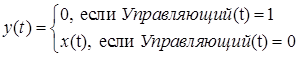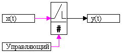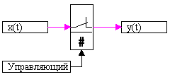 t) is the output signal of the block (or signal vector). The control signal enters the unit from above. During the calculation process the block image changes depending on the presence of the control signal: in normal position the key is closed, i.e. when the control signal is applied the key is opened: