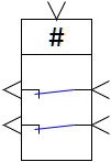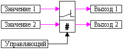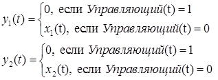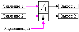 t) are the output signals of the block (or signal vector). The control signal enters the unit from above. During the calculation process the block image changes depending on the presence of the control signal: in normal position the key is closed, i.e. when the control signal is applied the key is opened: