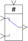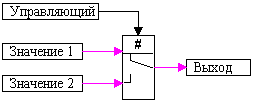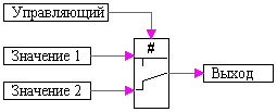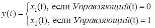 where x1(t), x2(t) are the input signals of the block (or signal vectors), y(t) is the output signal of the block (or signal vector). The control signal enters the unit from above. During the calculation process, the image of the block changes, depending on the presence of the control signal: in the normal position, the key is placed to the first input, when the control signal is applied, the key is moved to the second input: