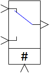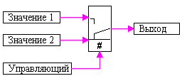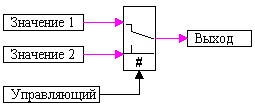 t) is the output signal of the block (or signal vector). The control signal enters the unit from above. During the calculation process, the image of the block changes, depending on the presence of the control signal: in the normal position, the key is placed to the first input, when the control signal is applied, the key is moved to the second input: