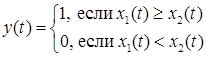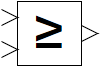 The block implements a logical operation GREATER-THAN-EQUAL-TO: