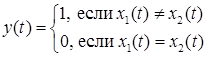 The block implements a logical operation NOT-EQUAL-TO: