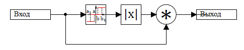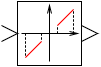 The block implements a linear link algorithm with a gain factor of 1 and a deadband set in the block parameters. The block is a submodel. To view the structure of the algorithm, right-click Actions → Enter to the submodel: