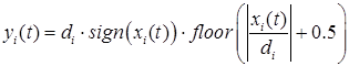 The block implements the signal quantization by discrete levels with a set level step. Operation algorithm of the block: