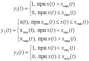 - Minimum is the value limiting the signal “from below”, xmin(t). If the absolute value of the input is less than the minimum signal, the block output is equal to the minimum, and the third output is set to logical one.
