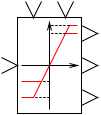 - Output — is equal to the input if the input signal does not exceed the maximum and is not less than the minimum. Otherwise, the output is equal to the maximum value or the minimum value, respectively.