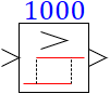 The block is a relay link with a deadband. The block forms at the output a logic 1 if the input signal has exceeded the setpoint value, or logic 0 if the signal has become less than the setpoint (taking into account the return zone, if it is set to non-zero):