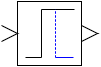The block implements a forced change in the integration step when the input intersects through the set value. In this case, 1 is formed at the output of the block if the transition condition is met.