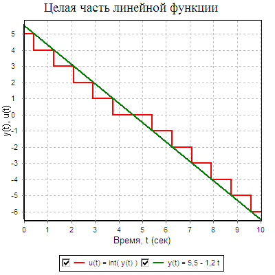 The block implements the operation of selecting an integer part of the input signal. An integer part is understood as the nearest smaller integer (in absolute value). That is, the integer part of a positive number is less than or equal to the number, and the integer part of a negative number is greater than or equal to the number (see