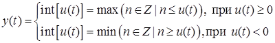 Z is the set of integers. In the case of a vector input signal, the block implements the operation of selecting an integer part of each of the elements of the input vector value.