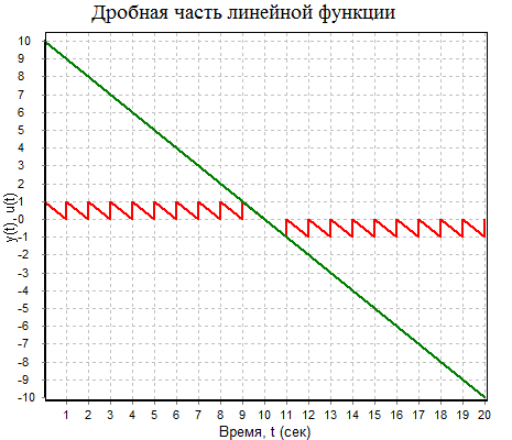 The block implements the operation of selecting a fractional part of the input signal. The fractional part means the difference between the signal and its integer part. The fractional part of a positive number is non-negative and the fractional part of a negative number is non-positive (see figure):