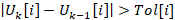 where Uk is the vector on the input port of the block at the current intermediate step, Uk-1 is the vector on the input port of the block at the previous step, i is the number of the element of the input vector, Tol is the vector of accuracy values specified in the properties of the block.