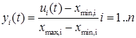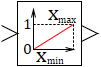The block implements linear interpolation of the input value. In this case, the input value equal to the minimum input value corresponds to zero at the output, and the input value equal to the maximum input value corresponds to one at the output: