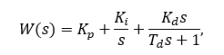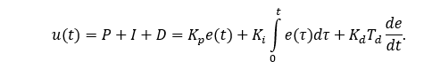 The output signal of the PID controller is determined by three terms: the first term is proportional to the value of the loop error sign (error), the second term is proportional to the integral of the loop error sign, and the third term is its derivative: