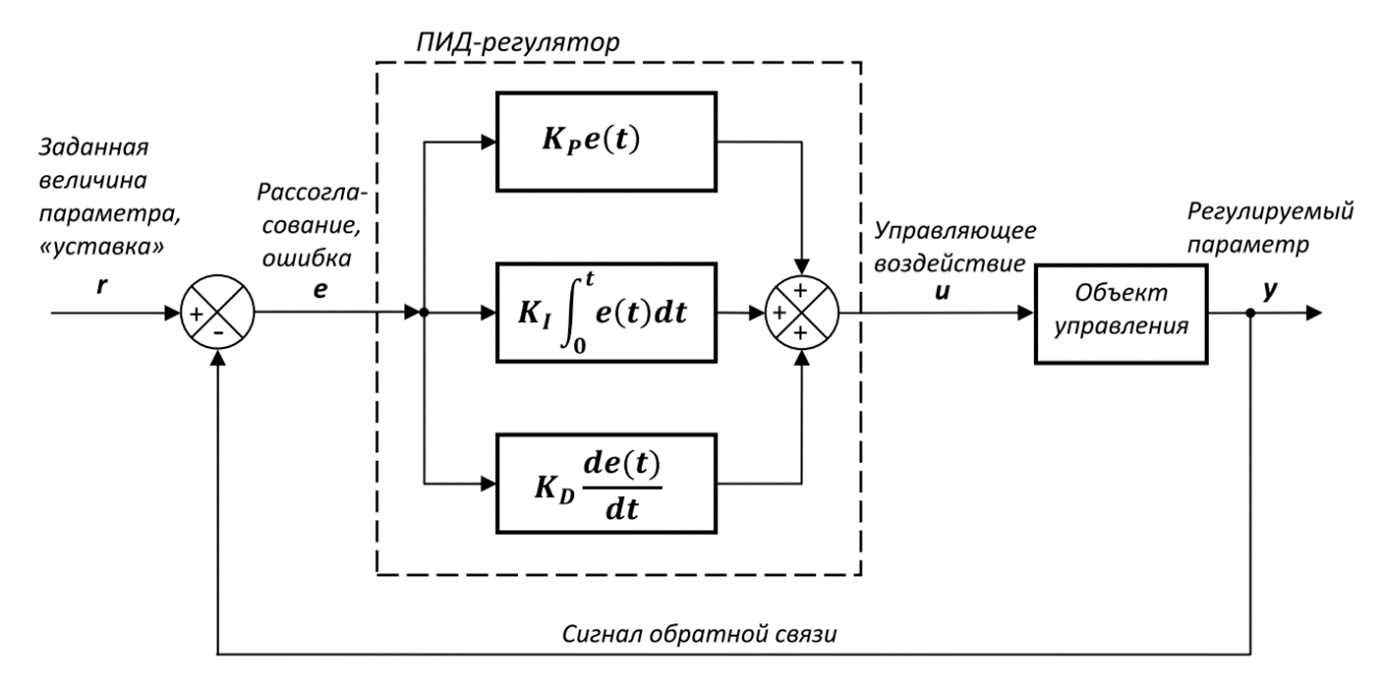 Рисунок 1. Structural diagram of a feedback control system with a PID controller.