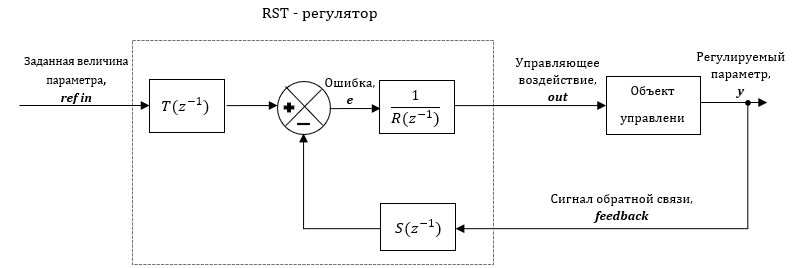 Рисунок 1. Structural diagram of the closed-loop control system (with feedback) equipped with a RST controller.