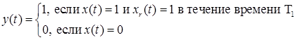 It implements the boolean AND operation with a delay in closing for the input of the block and the value supplied to the corresponding control winding of the relay: