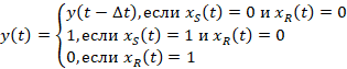 The block implements a synchronous reset-priority RS-trigger, i.e. at the time of synchronization, the block works similarly to the reset-priority RS-trigger:
