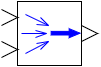 The block is vectorized, implements the "compression" of several scalar or vector input signals into one vector output signal of the "databus" type. The dimension of the output vector is equal to the sum of the dimensions of the inputs.
