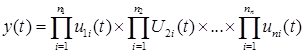 The block implements multiplication of all elements of all input vectors. Output signal – the scalar value: