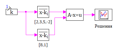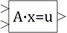 t) is the vector of the right-hand sides. The block has two vectorized input ports: 1st input port – for entering a matrix represented as a vector of coefficients when unpacking the matrix by rows. 2nd input port – for entering a vector (vector of the right parts). The block has one vector output port designed to output a vector (solution vector). The dimension of the vector signal on the 1st input port should be equal, where is the number of equations in the system, and the dimensions of the signals on the 2nd input port and on the output port are the same and equal.