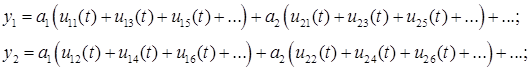 t), … are the elements of the input signal vectors of the blocks (the elements of the vectors