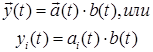 The block implements the multiplication of each of the elements of the vector value at the first input with the scalar value at the second input: