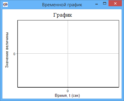 The block implements the display of current simulation results in the form of time dependencies for one or for several variables simultaneously. It can be used both for local simulation and remote debugging to display the values of signals calculated on the target system. In the Schematic window the block image is similar to the image of any typical block - a rectangle with a characteristic icon. If you click 2 times with the left mouse button on the block image in the schematic window, the so-called graphic window opens (it is also opened when initially placing the block on the schematic):