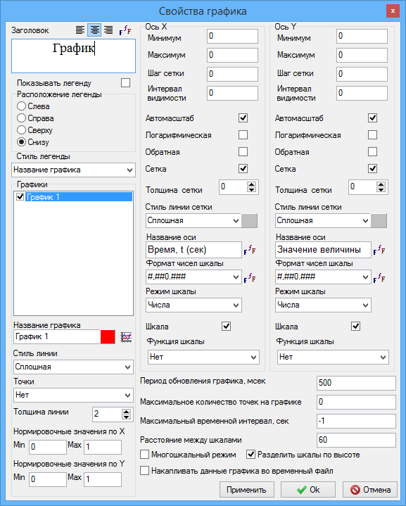 - Plot update time - If you are researching long processes, it is helpful to increase the update period. If the processes under study are short, it is better to reduce this parameter.