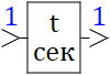 The block implements a temporary "delay" for changing the value of the output logical signal when changing the value of the corresponding logical signal in the input signal vector. It changes the value at the output when the condition is being met longer than the set time.