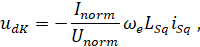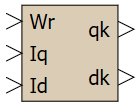 The block makes it possible to make the current control channels along the axes d and q independent of each other by generating cross-compensation signals. The value of the compensation voltages can be calculated in absolute or relative units.