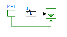 The connection line is directed from the block Mass to the block Force source, in which the mode of displaying the arrows of the input ports is enabled for clarity. A block having Massan output mechanical port transmits the values of the coordinate, speed and acceleration of the body to the connection line, and the block Force source having an input mechanical port transmits the force value to the connection line. In general, the blocks with the output mechanical ports simulate the body motion profile, and the blocks with the input mechanical ports simulate the forces and torques acting on the bodies connected to them.