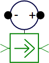 | R | Port for connecting a conditionally movable rod (rod) | Translatory mechanics |