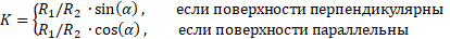 α – angle between the bodies, rad. As a rule, it is determined by the difference between the angles φ1 and φ2 (Figure 1)
