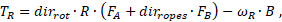 - FA and FB – rope tension forces at ports "A" and "B", respectively, N