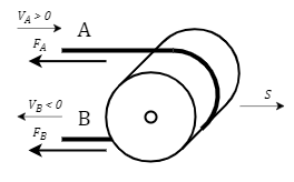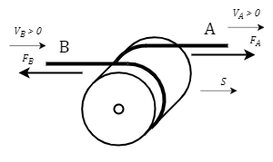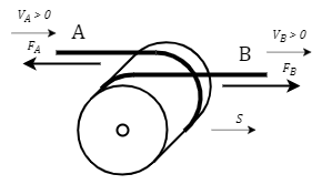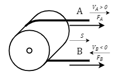 - FA and FB – belt tension forces at ports "A" and "B", respectively, N
