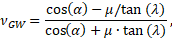 νGW – efficiency when transmitting power from the gear to the worm gear