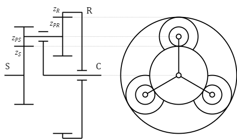 ZPS – number of teeth of the planet gears meshed with the sun gear